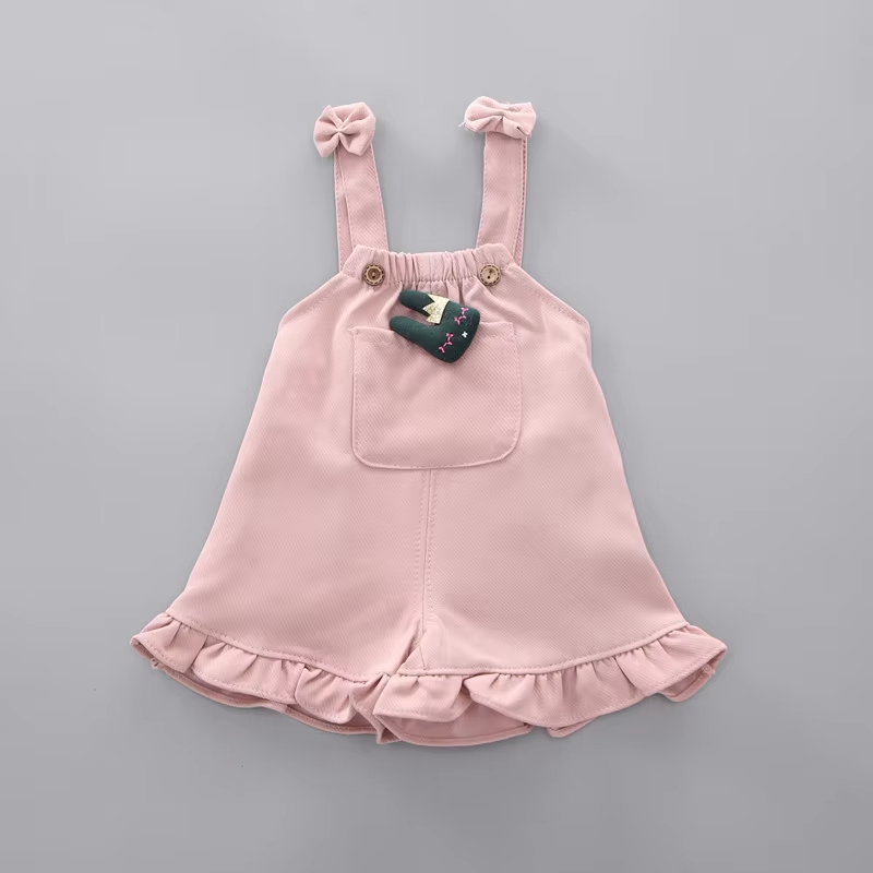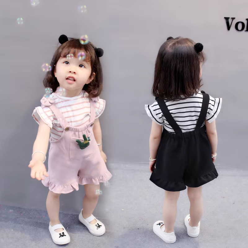 2pcs Cute Toddler Baby Girl T-shirt+Suspender Shorts Outing Clothes New Fashion Bay Sets Suits (No Shoes No Bag)