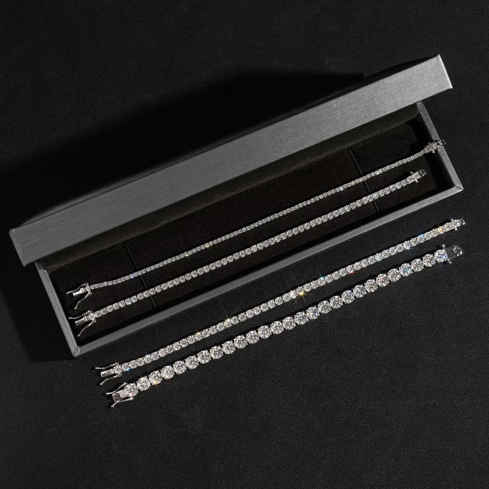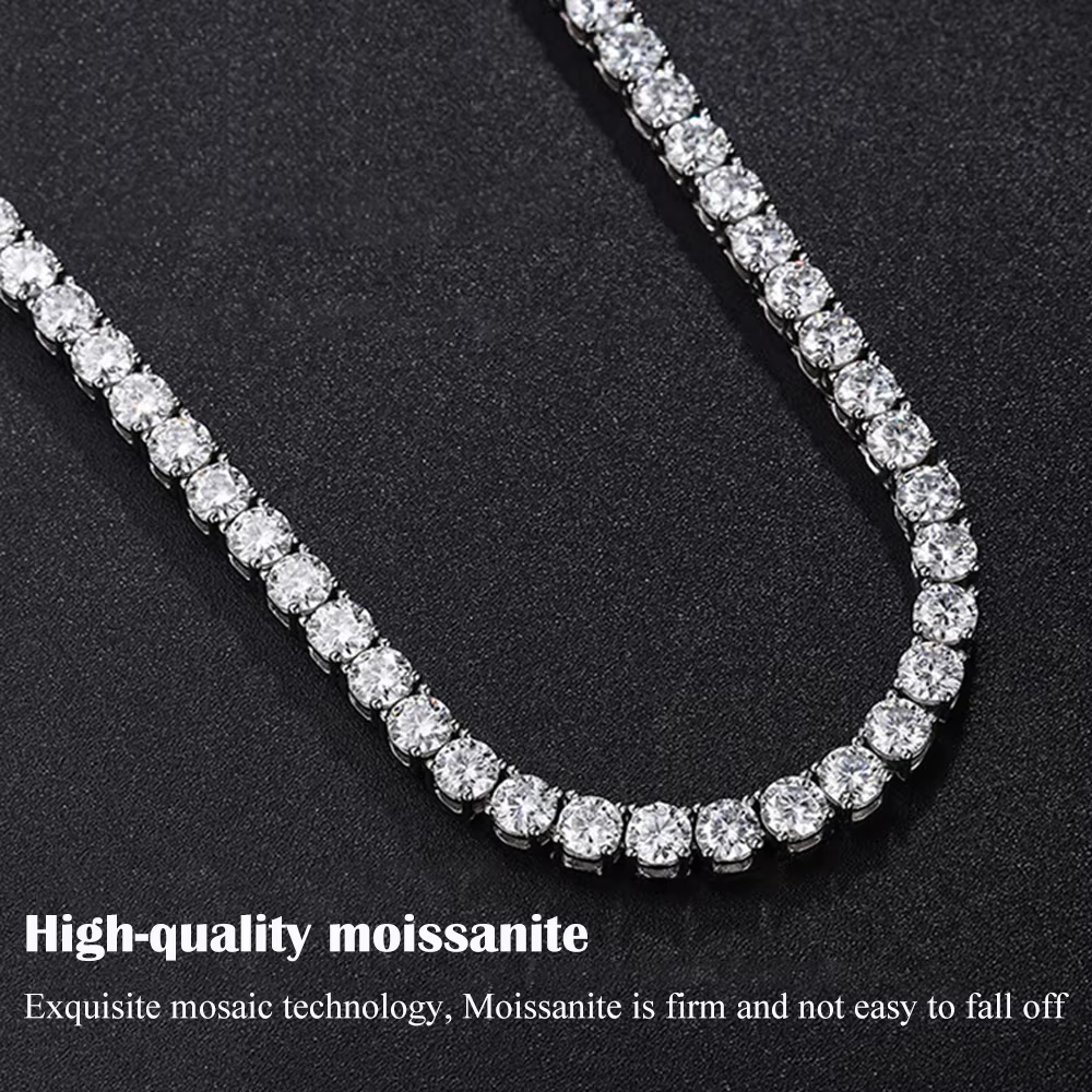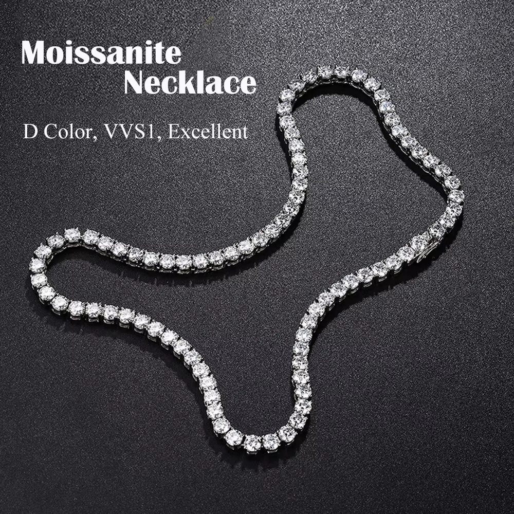 FEOBUR 3/4/5/6.5mm Real Moissanite Tennis Necklace Bracelet for Women Men 925 Sterling Silver Lab Diamond Neck Chains Party Jewelry GRA