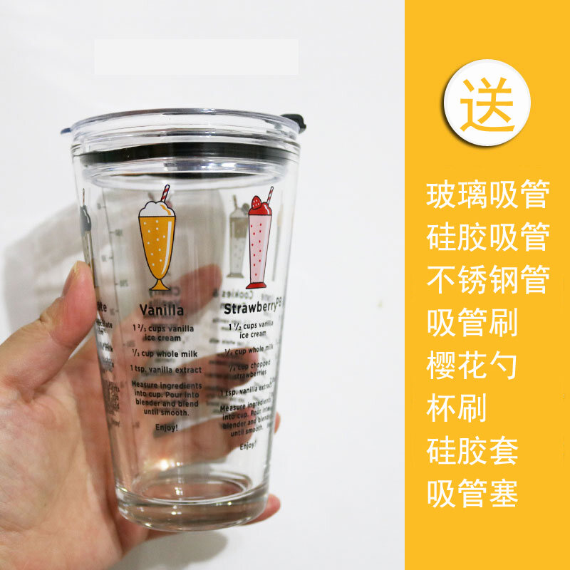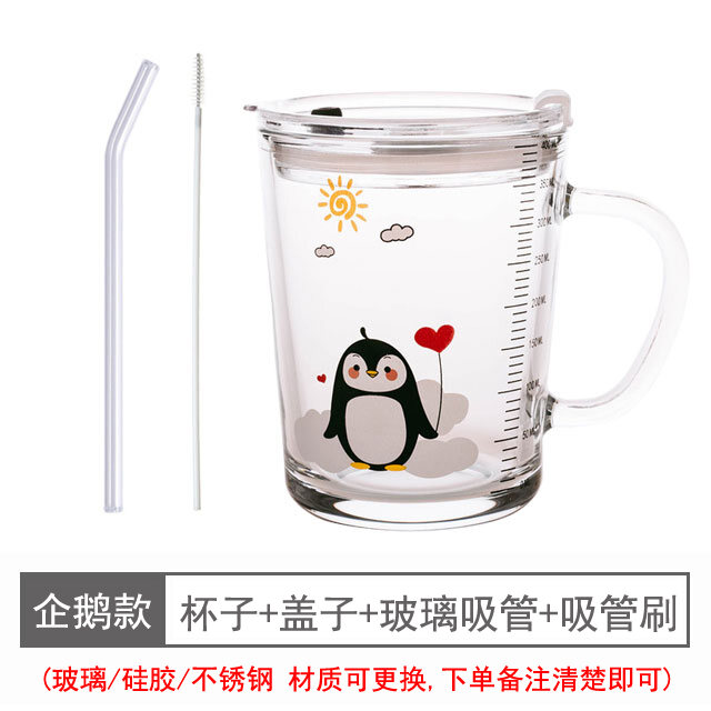 Good Product Straw Cup Adult Portable Children's Milk Cup Ins Internet Celebrity Girl Cute Water Cup Snoopy Scale Glass