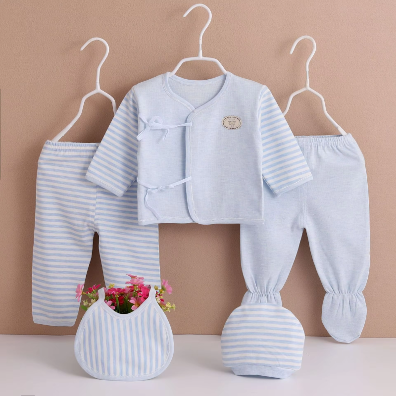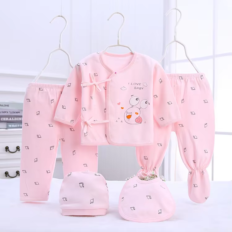 5Piece Sets Spring Baby Girl Boy Clothes Casual Cartoon Cute Print Long Sleeve Cotton Tops+Pants+Hat Newborn Hospital Set BC1361