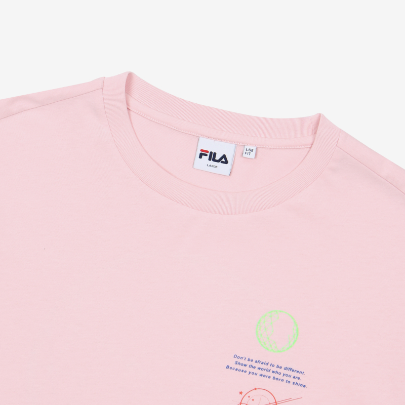LSE FIT (Fits a size bigger, oversized)[Voyager Collection] by SS20FILA Korea,which applies the artwork and materials to match the trend of the motif from the Space and Stars.Fit to keep a comfortable fit that doesn't stick to the bodyMade of polyester / cotton blend, easy to wash and excellent in shape stability.Material: 75% Cotton, 25% polyester
