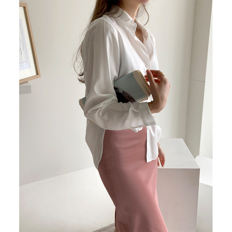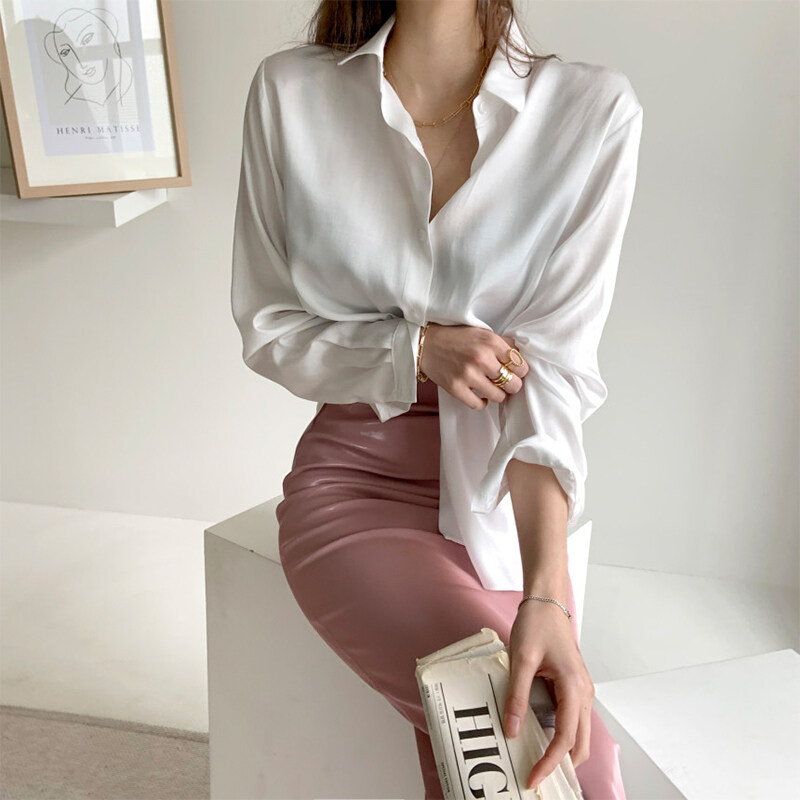 HolidayQueen High quality chic fashion brim joker satin white shirt long sleeve blouseWomen's clothing HQTE101155