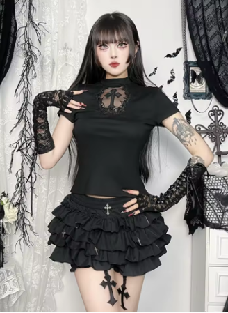 AltGoth Mall Goth Cake Shorts Women Hotsweet Y2k E-girl Harajuku Cross Pendant Culottes Aesthetic Fairycore Cute Kawaii Shorts