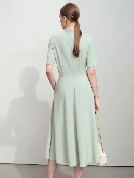 Amii Minimalist 2025 Spring New Short Sleeved Solid Elegant Commuter Stand Up Collar Splicing Waist Dress Drape Skirt 12541006