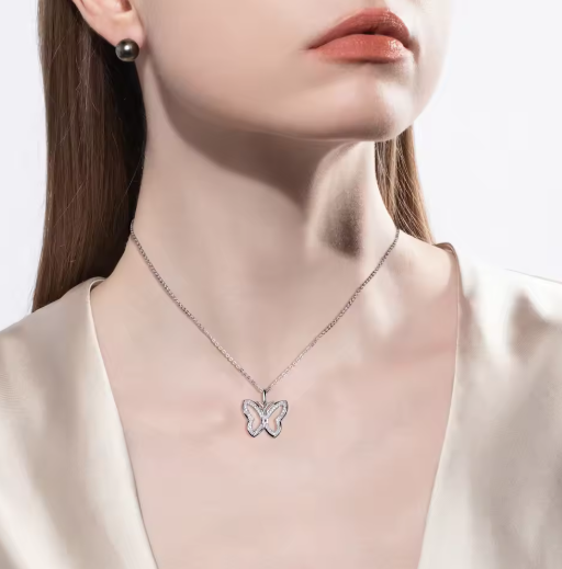 AnuJewel D Color Hollow Moissanite Butterfly Pendant Necklace 925 Sterling Silver Fine Jewelry Gifts Wholesale