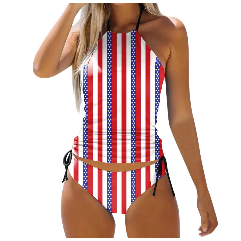 Bikini Women Swimwear 2025 Women'S Split Swimsuit Set Independent Day Printed Split Bikini Beach Set Nuevo En Conjuntos A Juego