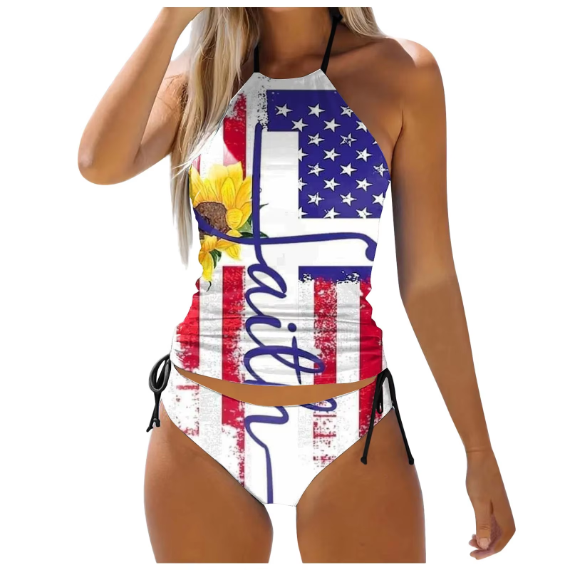 Women's Split Swimsuit Set Independent Day Printed Split Bikini Beach Set
