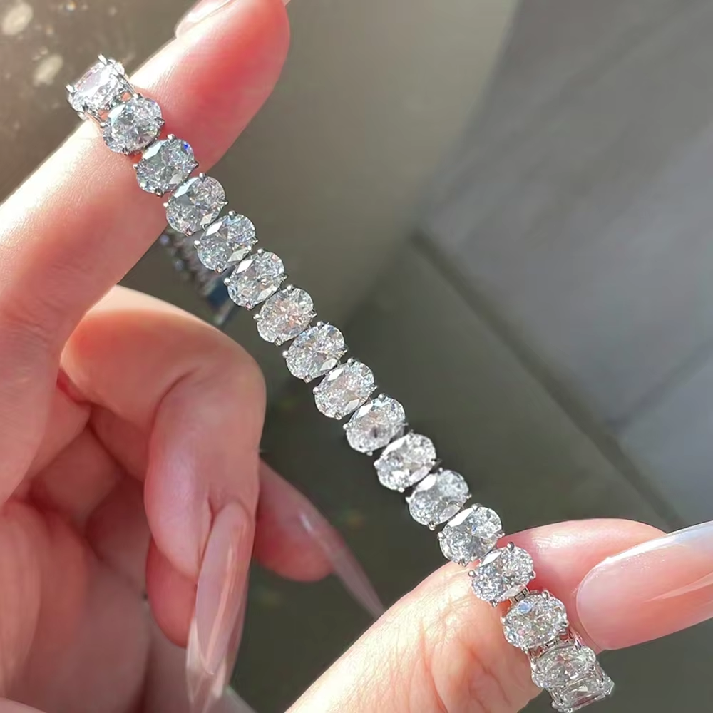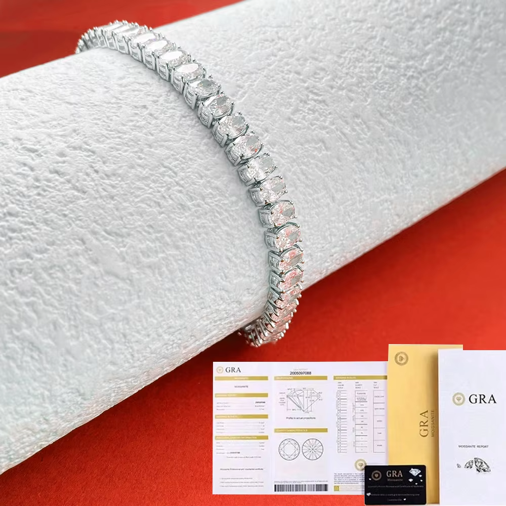 BXINY 0.5Carat Oval Cut Moissanite Tennis Bracelets S925 Silver 18K Gold Plated for Women Men HipHop Jewelry Gifts GRA Certified