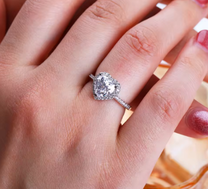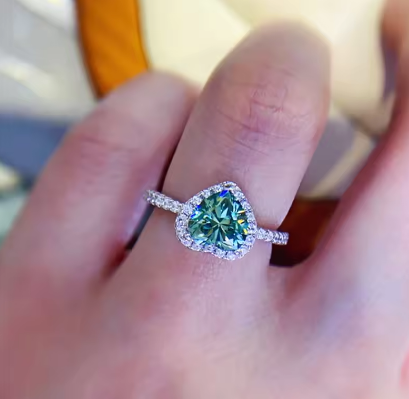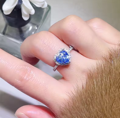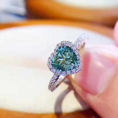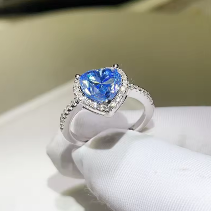 BXINY 1/2CT Sea Blue Heart Cut Moissanite Rings S925 Silver GRA Certified Diamond For Women Halo Wedding Band Fine Jewelry Gifts