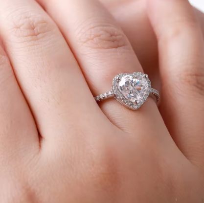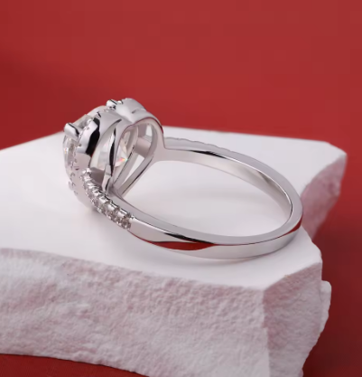 BXINY GRA Certified 1/2CT Heart Cut Moissanite Rings 925 Sterling Silver D Color Lab Diamond For Women Halo Wedding Band Jewelry