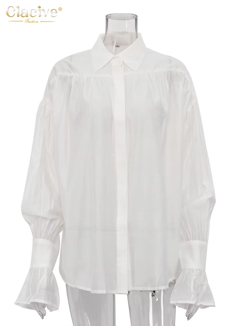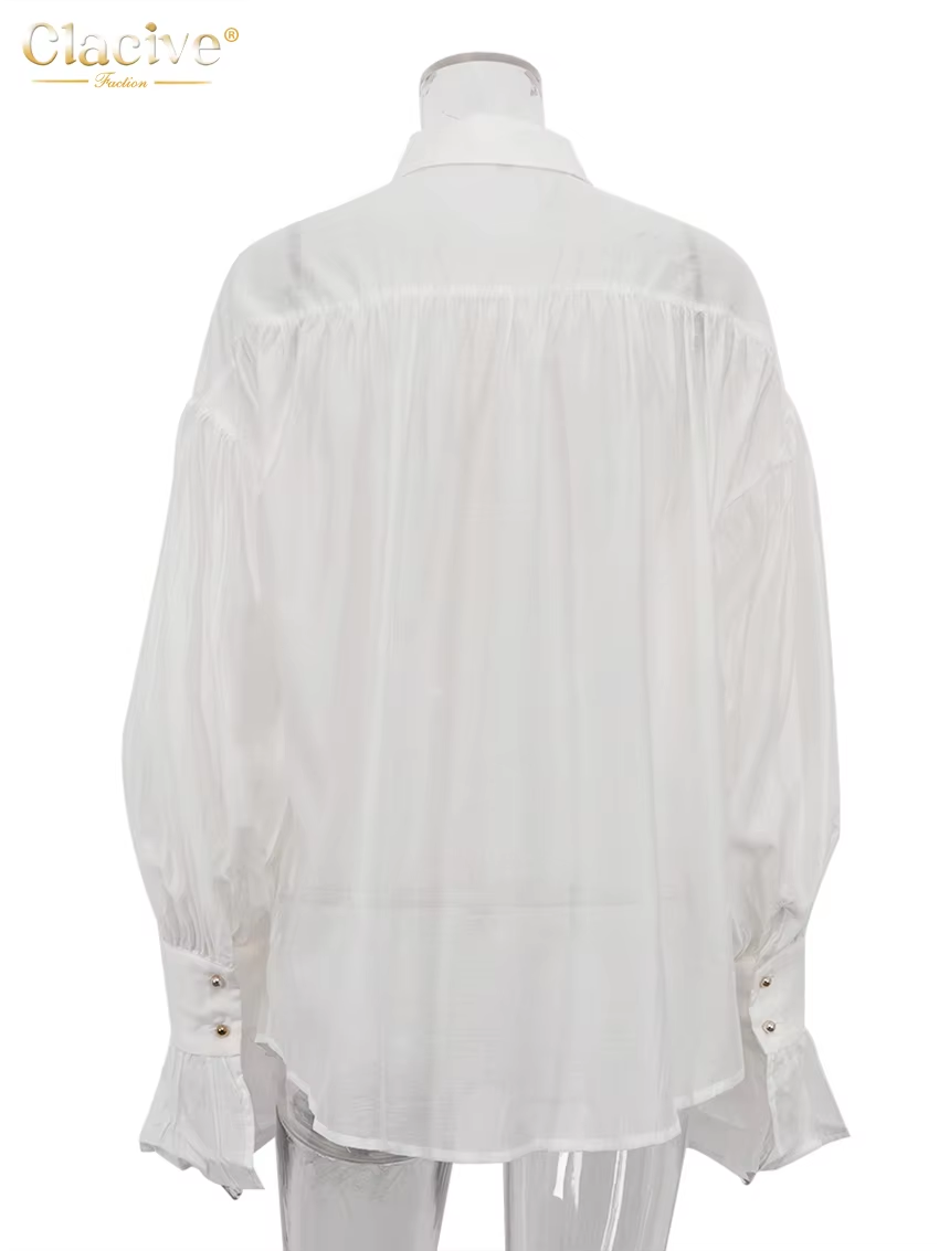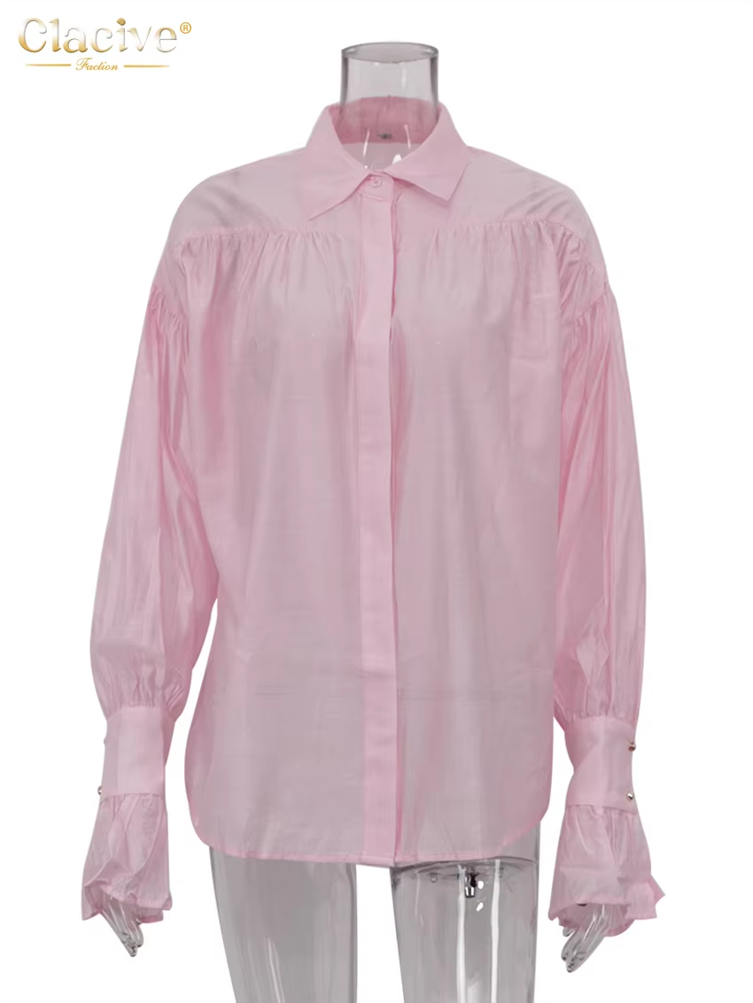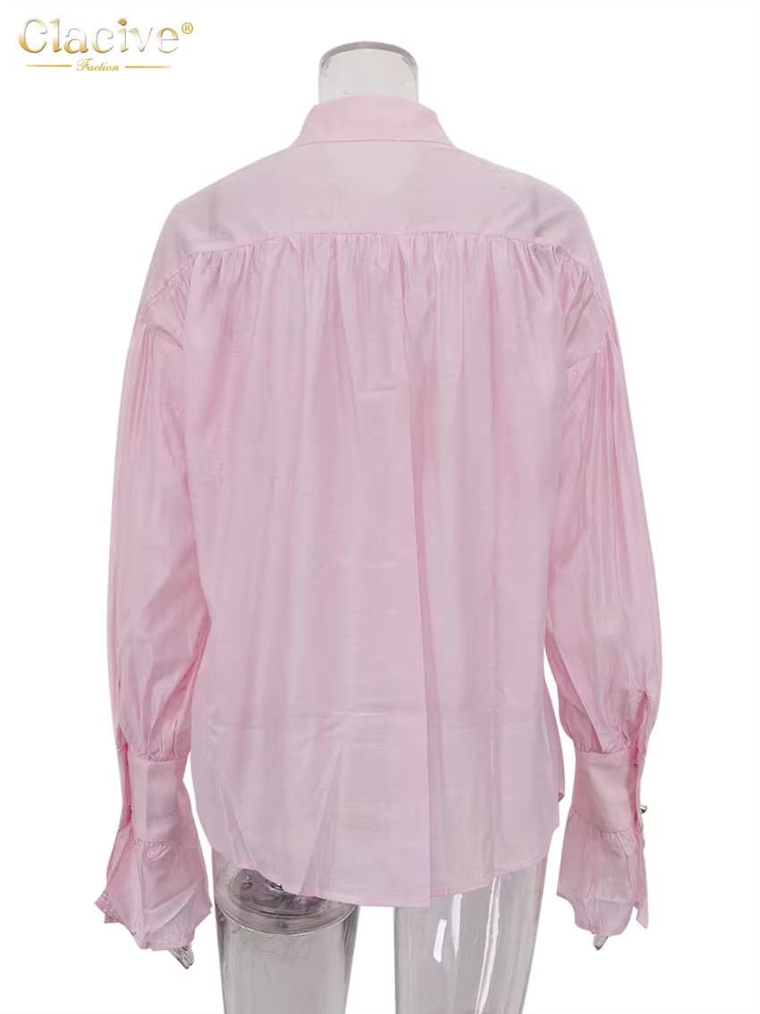 Clacive Fashion Loose Pink Office Women's Blouse 2024 Elegant Lapel Long Sleeve Shirt Casual Classic Solid Top Female Clothing
