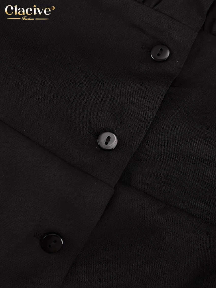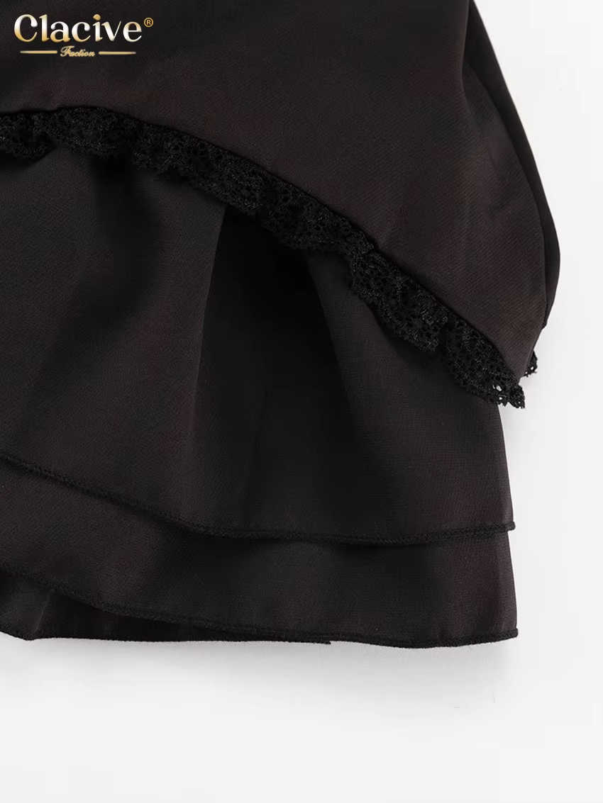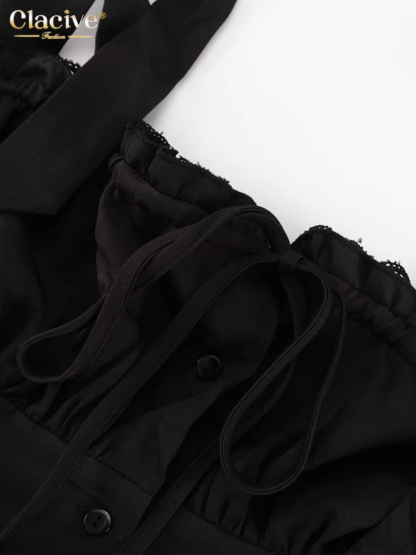 Clacive Fashion Slim Black Women's Dress 2024 Summer Strap Sleeveless Mini Dress Elegant High Waist Pleated Party Dresses Female