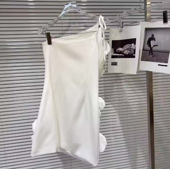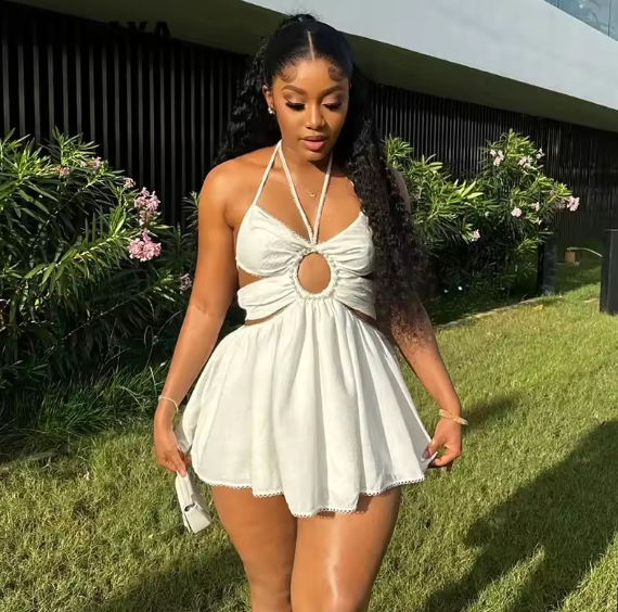 CM.YAYA 2024 Women Halter Strap Sleeveless Mini A-Line Dress Sexy Beading Backless Streetwear Evening Night Club Party Dresses