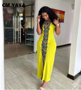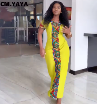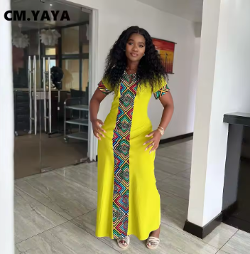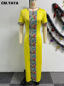CMYAYA Women O-neck Short Sleeve Maxi Long Dress Striped Printed 2024 Summer Sexy Casual Night Club Party Street Africa Dresses