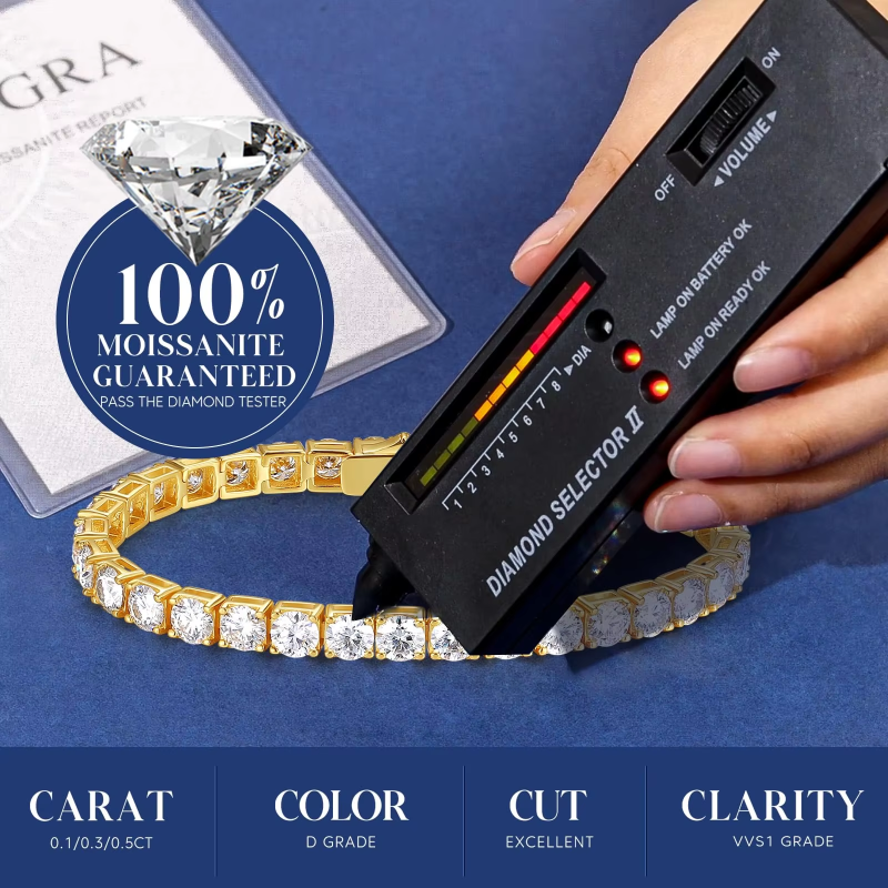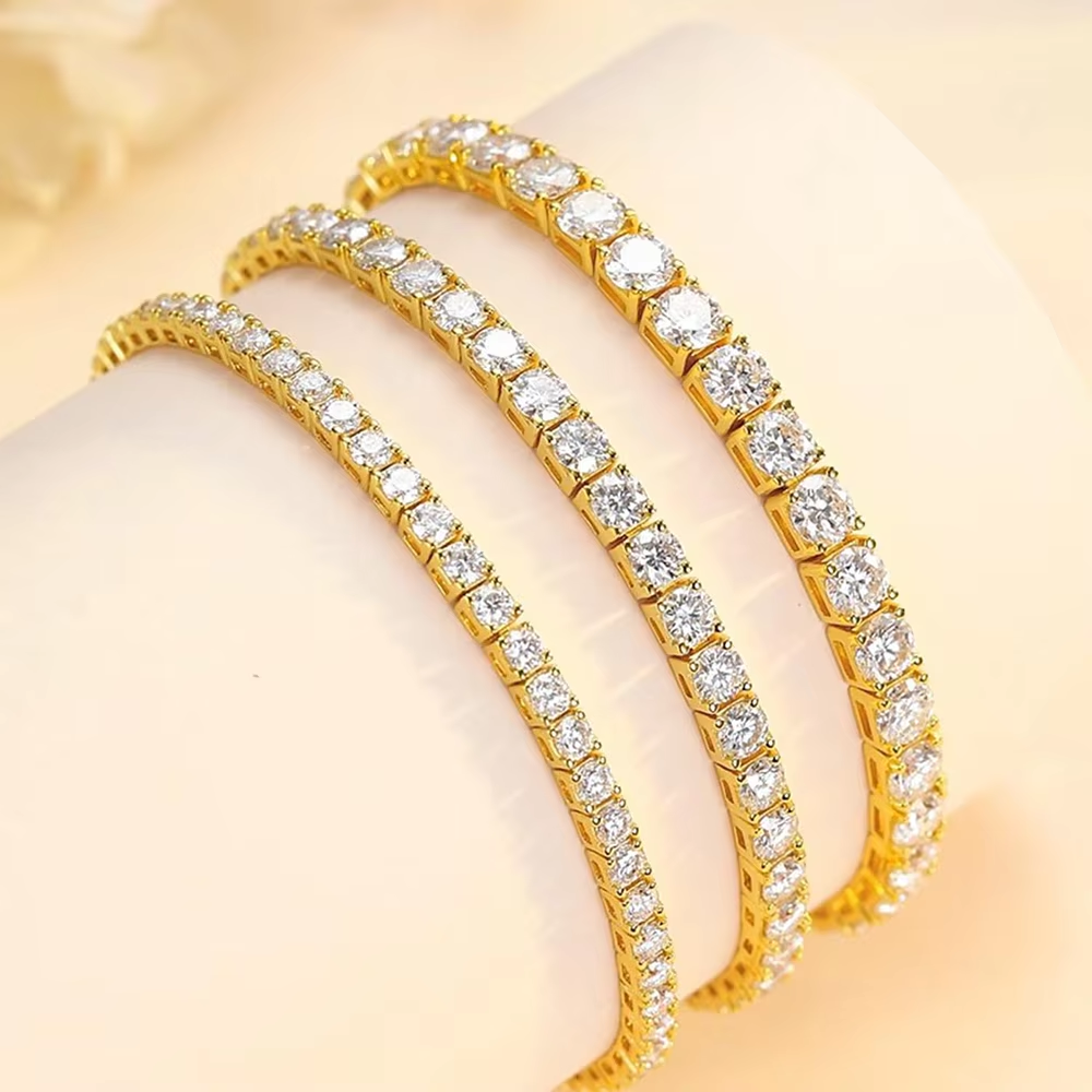 Sweetrain Dainty Full Moissanite Tennis Bracelet 18k Gold Plated 925 Sterling Silver D Color Lab Created Diamond Bracelet for Women Men