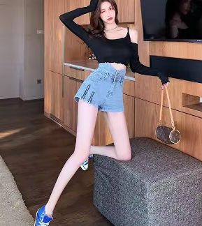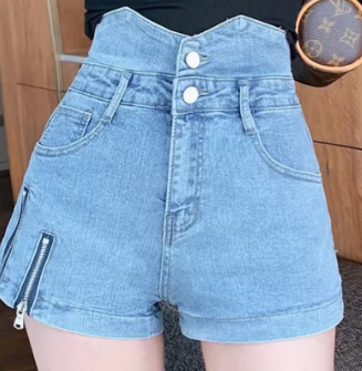 Denim Shorts for Women in Summer Internet Celebrity Slimming New Hot Girl Stretch High Waist Slit Zipper Ins a Line Hot Pants