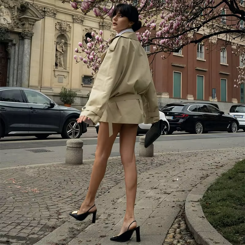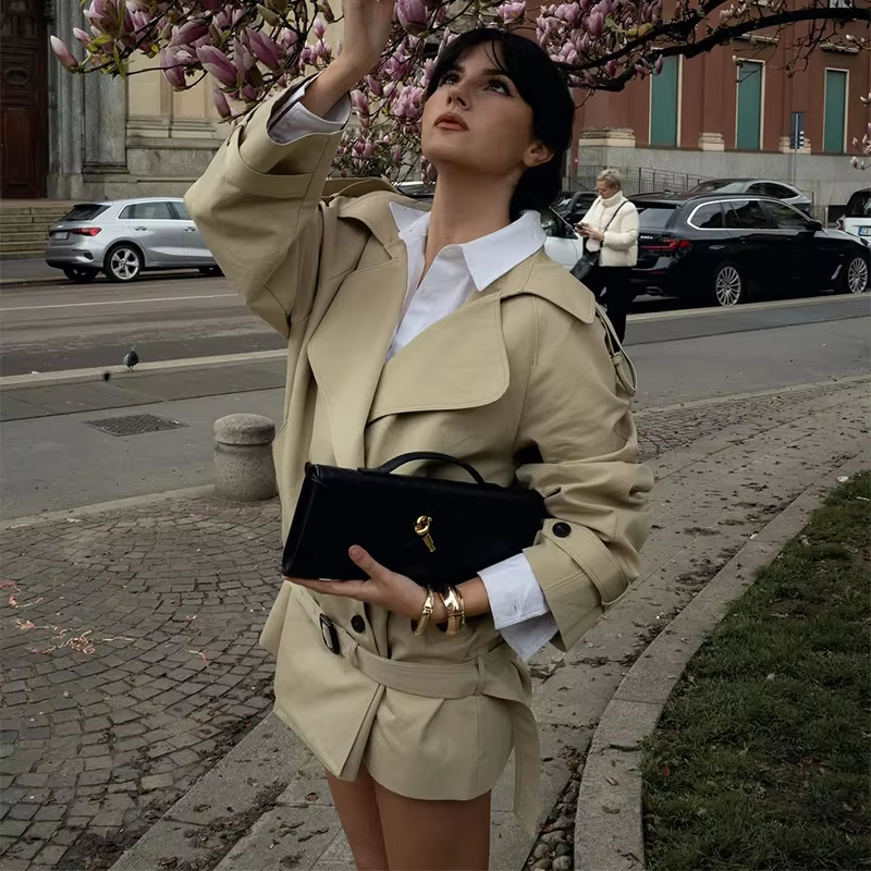 Elegant Belted Double Breasted Windbreaker Women 2025 New Long Sleeve Oversized Jackets Spring Female High Street Outerwear New