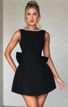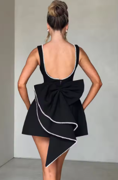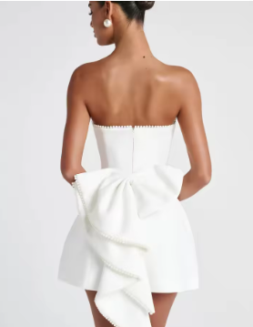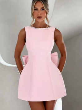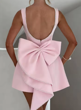 Elegant Pearl Bow Backless Sexy Mini Dress Women's Luxury Party Short Dresses White Black Pink Birthday Evening Wedding Summer