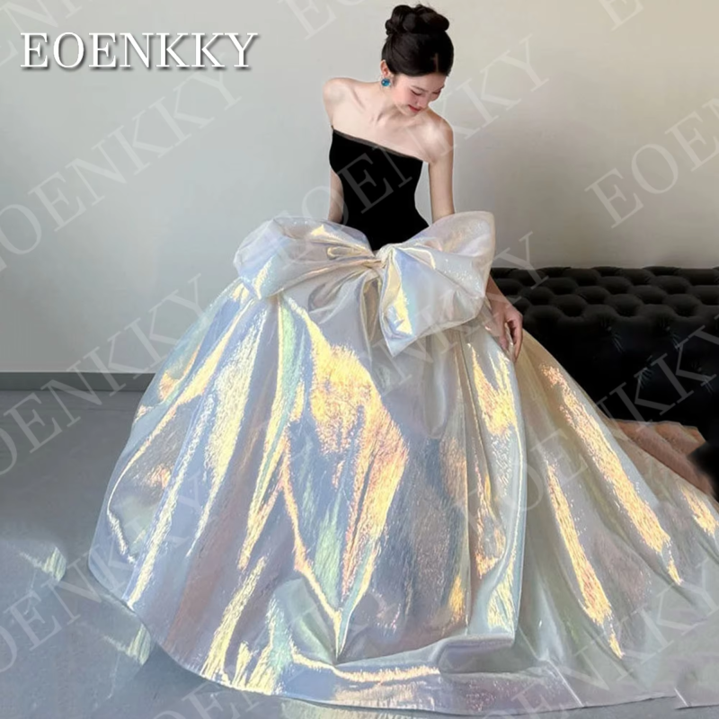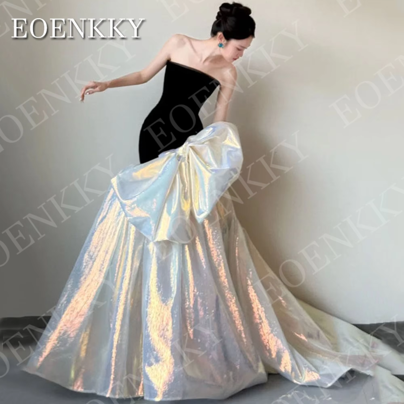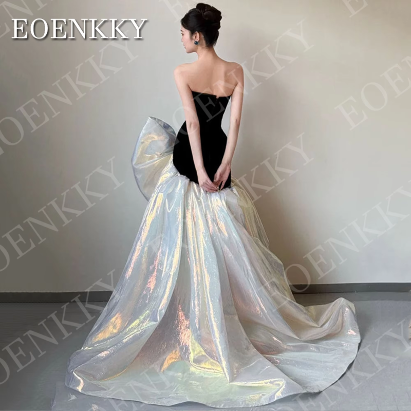 EOENKKY Sleeveless Mermaid Prom Dresses Black Elegant Strapless Velvet Oversized Bow Wedding Party Dress Customized Woman 행사드레스