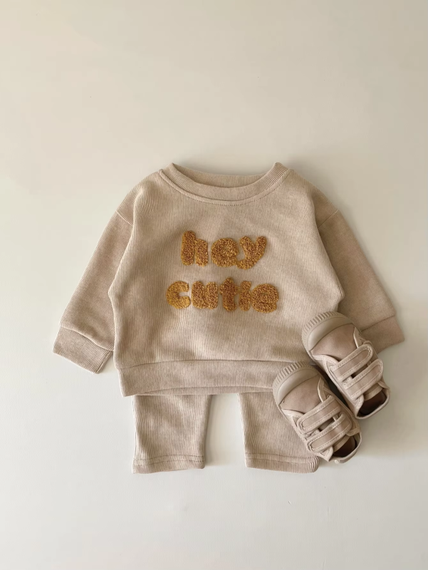 Europe Baby Cotton Kintting Clothing Sets Kids Boys Girls Spring Clothes Loose Tracksuit Pullovers Tops+Pants 2PCS Outfits