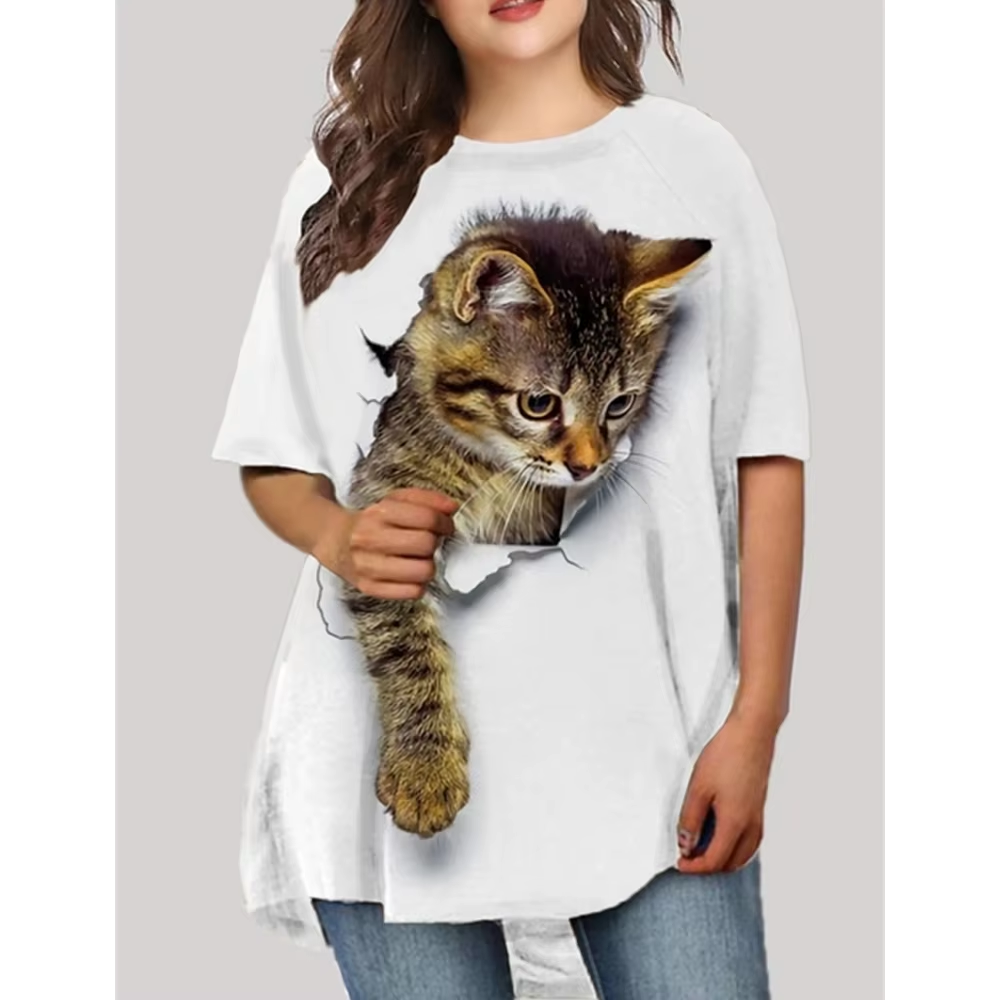 Fashion T-Shirts For Women Oversized Tops 3d Print Cat Graphic Loose Streetwear O-Neck Clothing Short Sleeves Ladies Shirts Tees