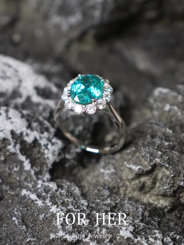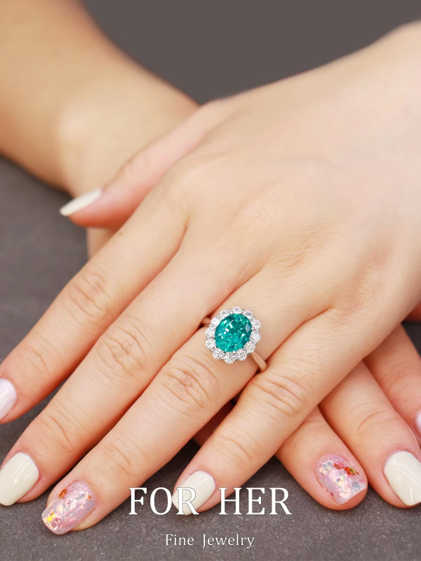 ForHer Design Fine Jewelry Custom Made Lab Grown Palaiba Princess Ring Surround For S925 Sliver Gold Plated Oval Cutting Gem