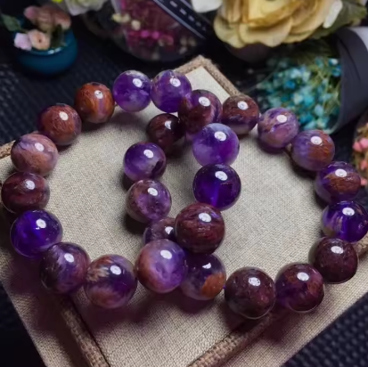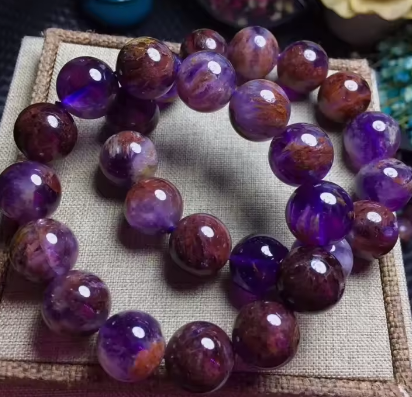 Genuine Natural Cacoxenite Quartz Purple Phantom Round Beads Women Stretch Bracelet 13mm 14mm Reiki Rare Stone AAAAA