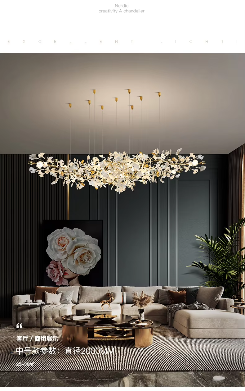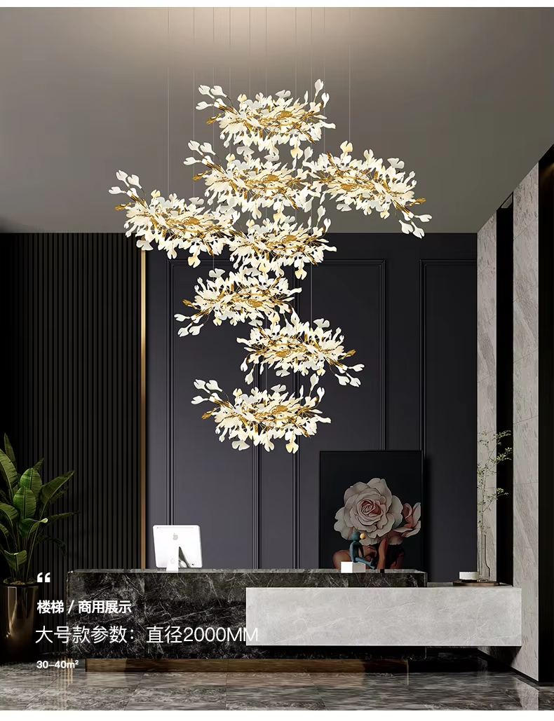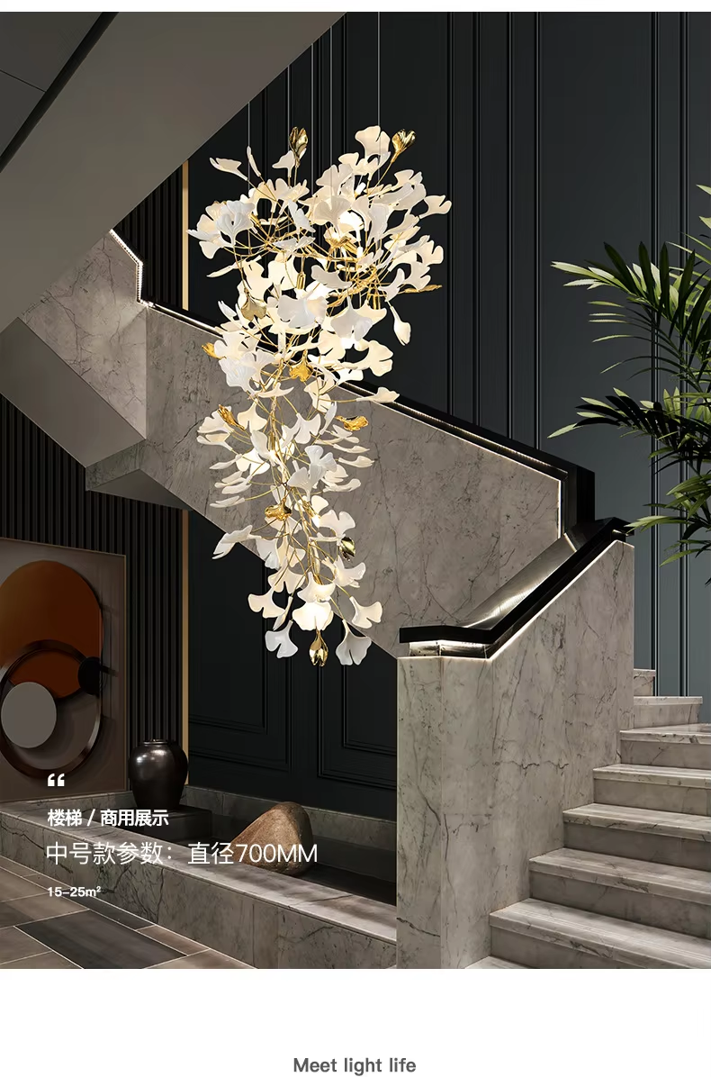 Ginkgo leaf stairwell long chandelier atmospheric light luxury villa duplex building loft hotel lobby creative art lamps