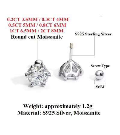 Package: 1*moissanite Earrings + black box + cleaning cloth + velvet bag