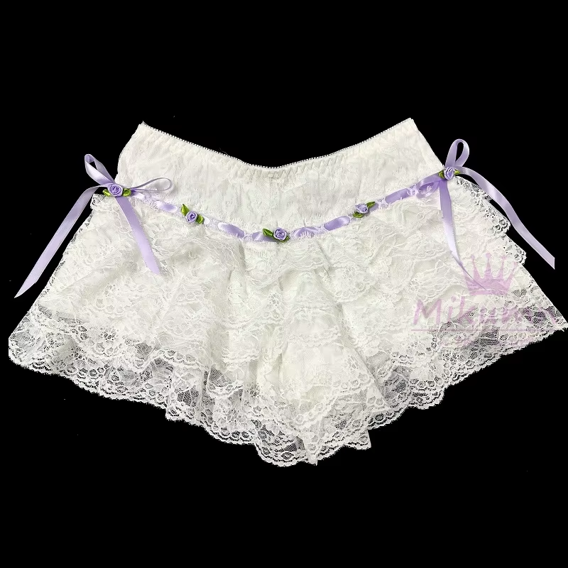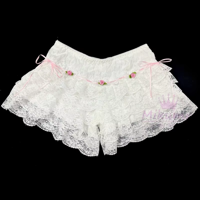 Harajuku Women Kawaii Lace Shorts Lolita Cute Flower Bowknot Ruffles Safety Shorts Pants Vintage Victorian Bloomers