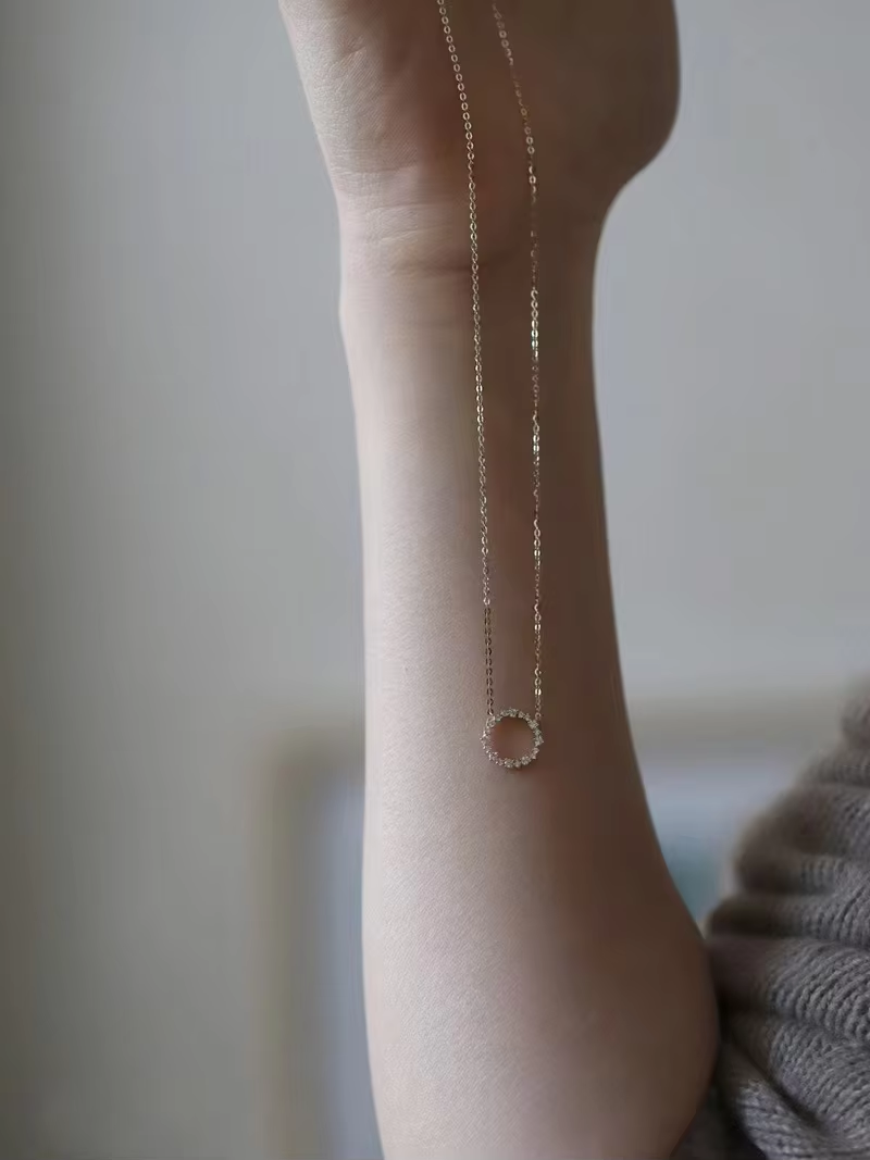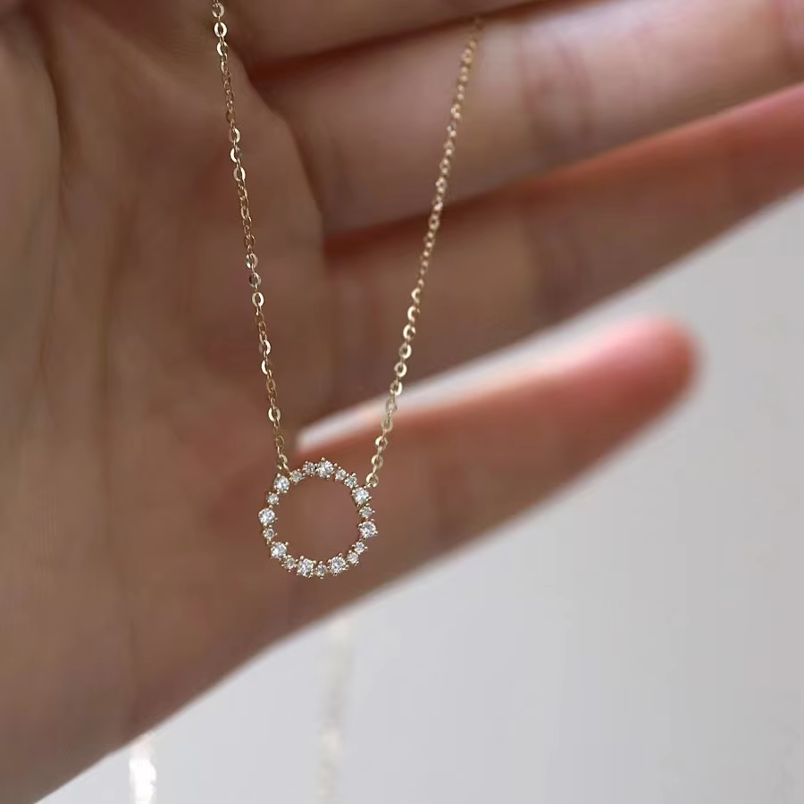 Hot Sale 925 Sterling Silver Plated 18K Gold Necklace with Full Diamond Circle Alternative style K Gold Collar Chain