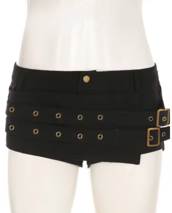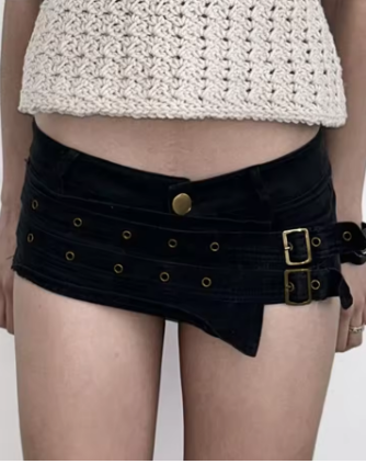 IAMSURE Dark Solid Super Mini Shorts With Sashes Y2K Sexy Slim Low-Waisted Shorts Women 2025 Summer Fashion Streetwear Ladies