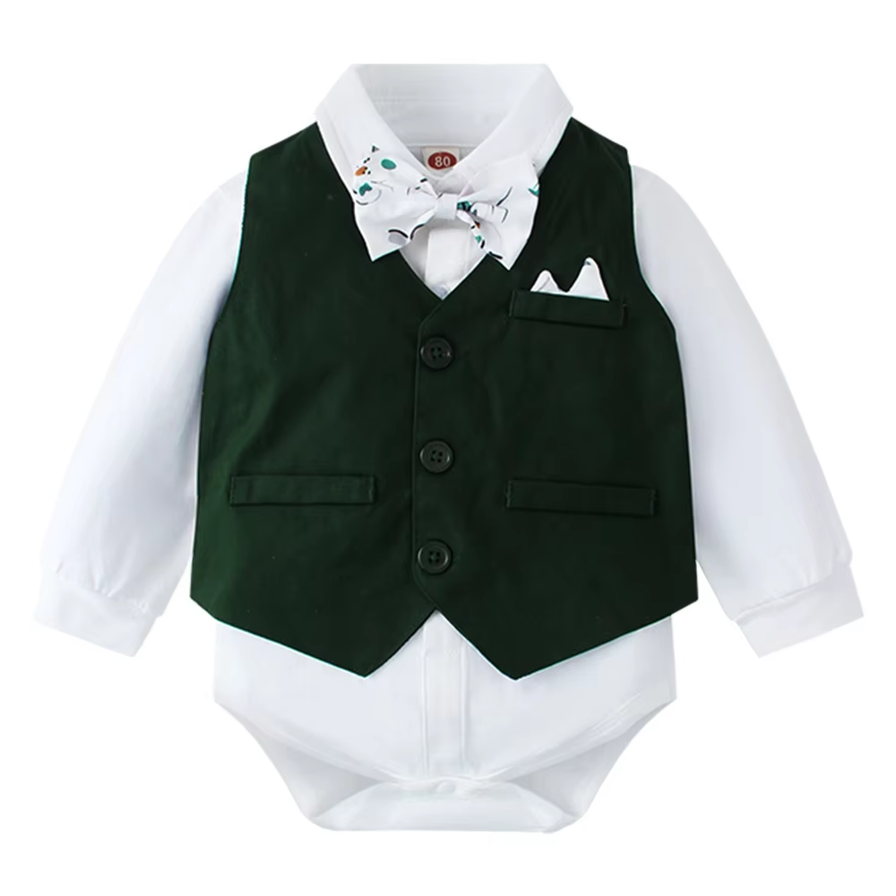One set: Romper+Pants+Vest+Bow