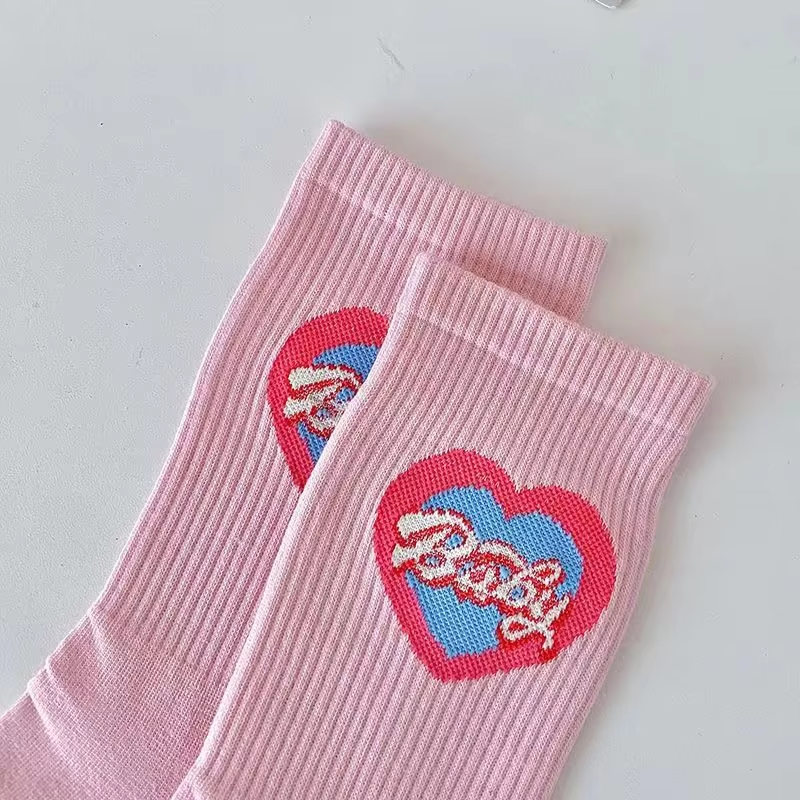 kpop Pink Series Women Long Socks Autumn Cotton Middle Tube Sock Y2K Harajuku Love Heart Female Stockings JK Girls Sokken Sox