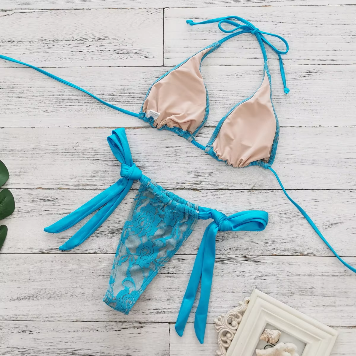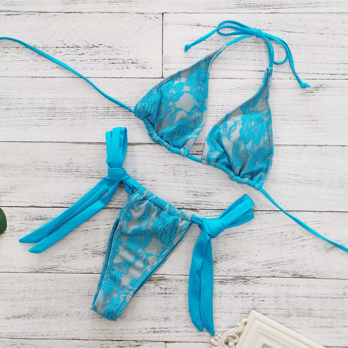Lace Patchwork Bikinis Micro Thong Swimwear with Long Sleeve Cover Up Side Bandage Beach Bathing Suit Halter String Swimsuits