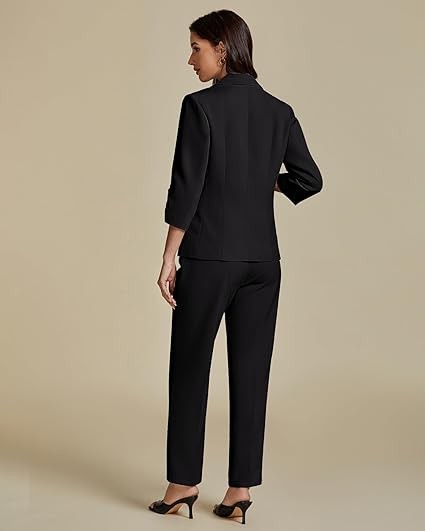 luvamia Pant Suits for Women Dressy 2 Piece Business Casual Outfits 3/4 Sleeve Blazer Straight Leg Pant Sets Office Work