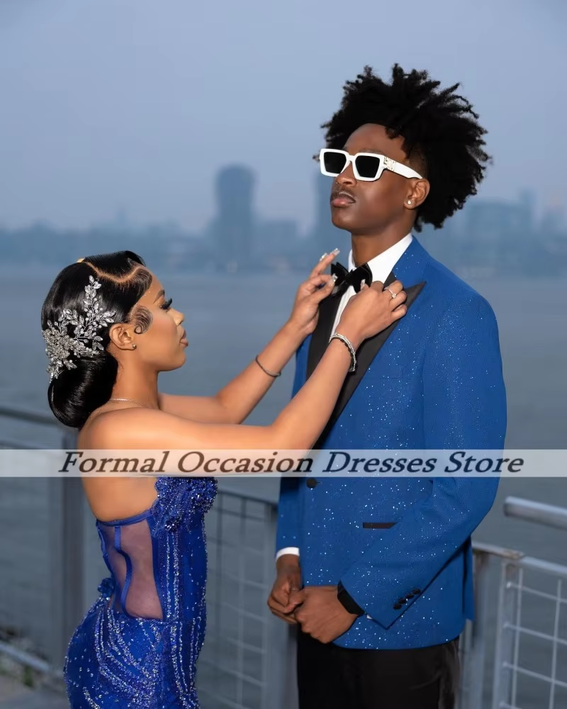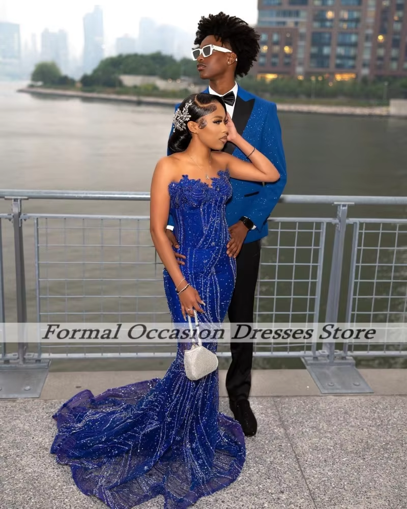 Luxury Blue Prom Dresses 2025 Sweetheart Sequin Beads Mermaid Party Gowns For Black Girls Maxi vestidos de graduación Customized