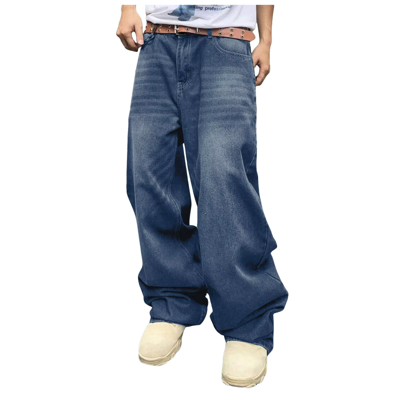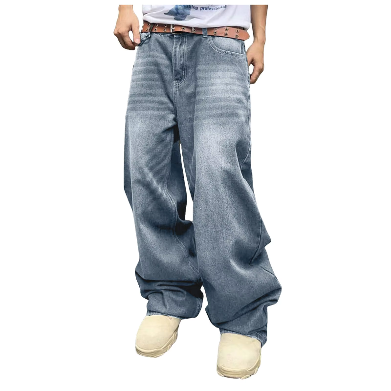 Stylish baggy fit: Men's Baggy Hip Hop Jeans feature a loose and relaxed fit, showcasing a trendy baggy that is perfect for streetwear fashion.