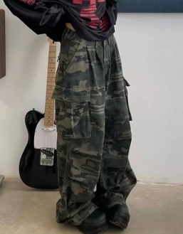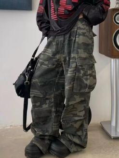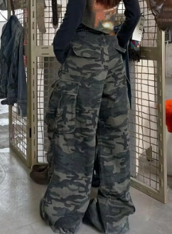 Military Green Womens Jeans High Waist Vintage Straight Baggy Y2K Denim Pants Hip Hop American Fashion Wide Leg Denim Trouser