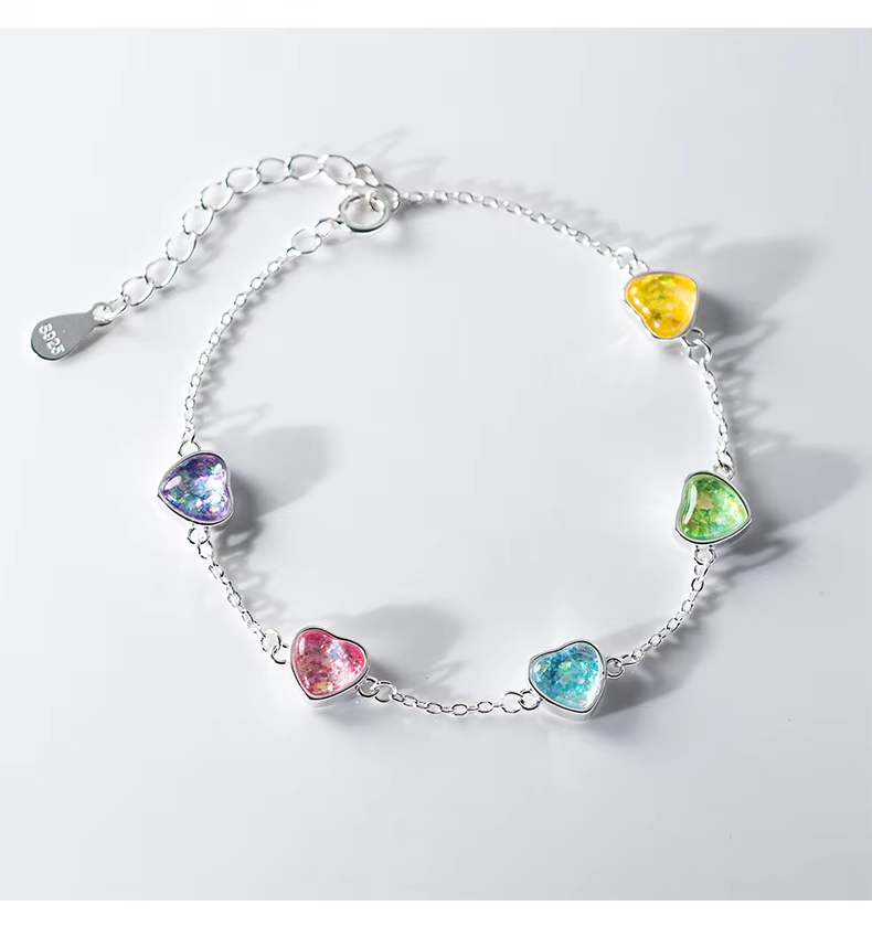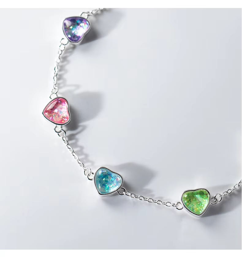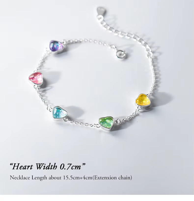 MODIAN 925 Sterling Silver Heart To Heart Colorful Shining CZ Bracelet Adjustable Chain Link For Women Valentine's Day Gifts