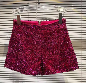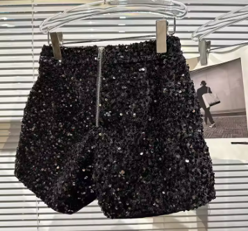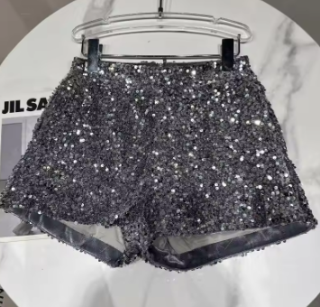 New Clubwear Shorts Ladies Sexy Sequins Shorts Loose High Waist Streetwear Wide Leg Short Pants Sliver Black Women Clothing