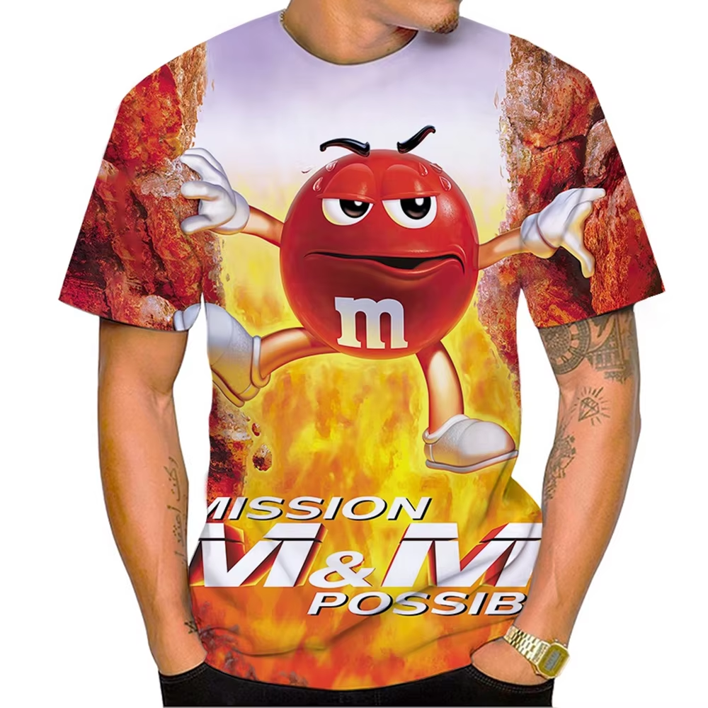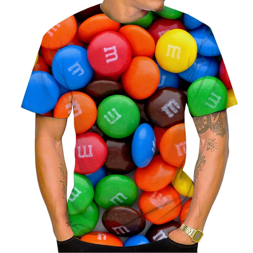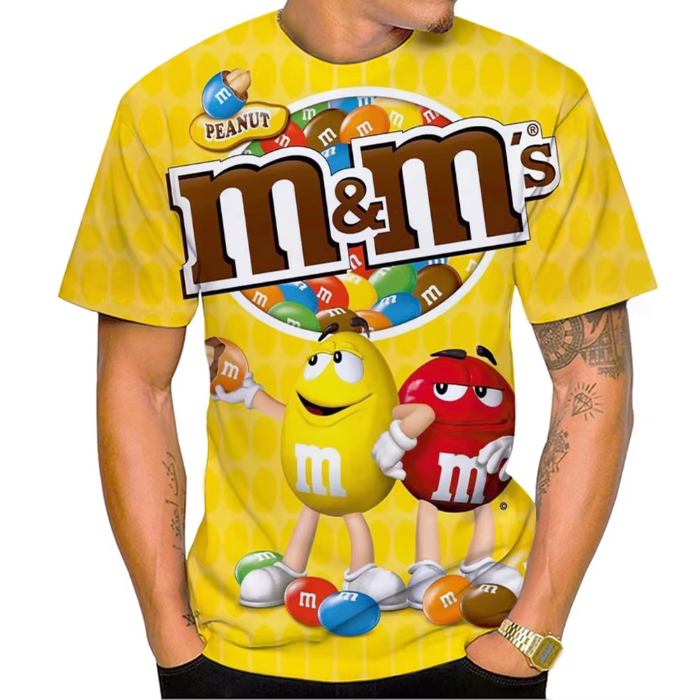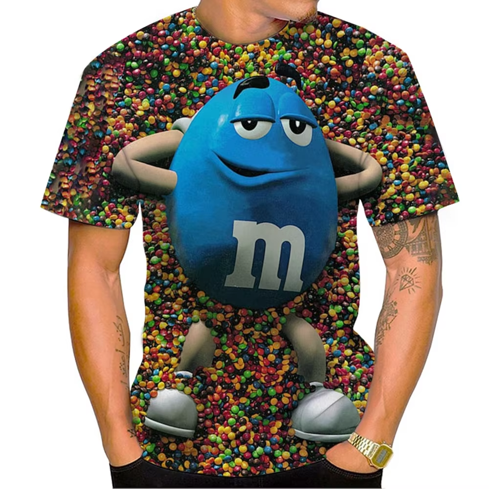 New M&mChocolate Beans 3D Printed T-shirt Fashion Casual Round Neck Pullover Men and Women Cute and Funny Short-sleeved T-shirt