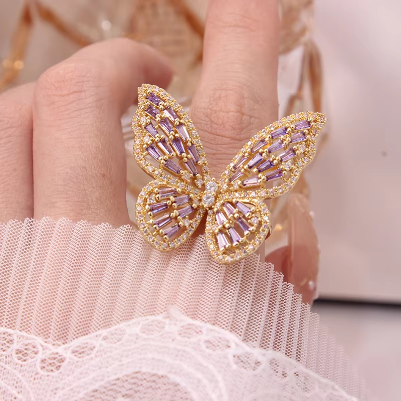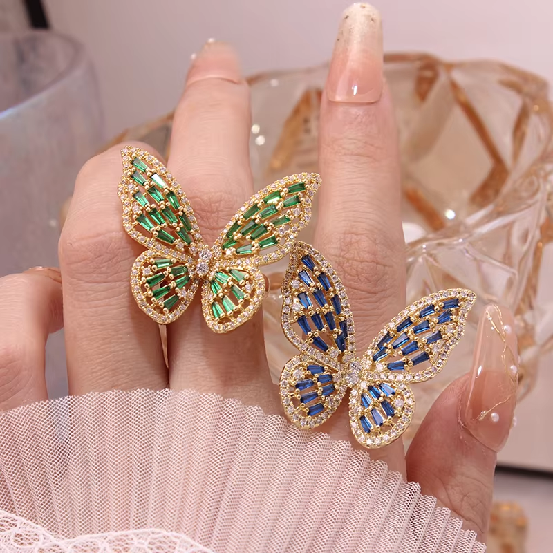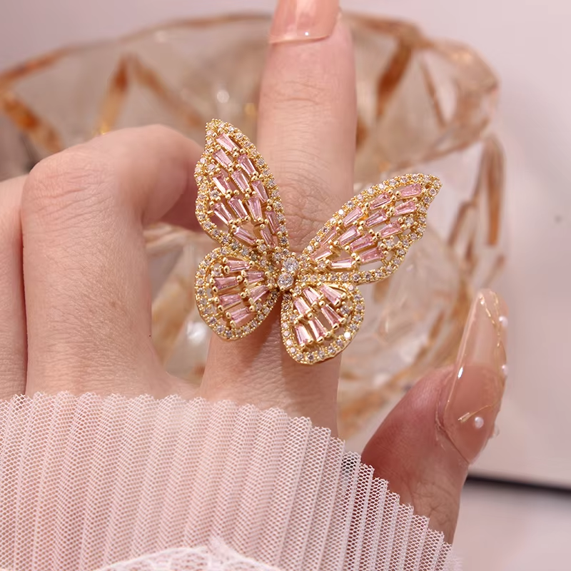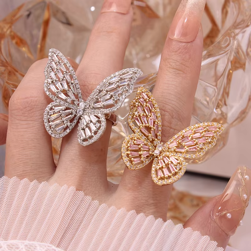 New Sight New Fashion Brand Jewelry Zirconia Butterfly Engagement Rings for Women Gift Adjustable Open Wedding Rings