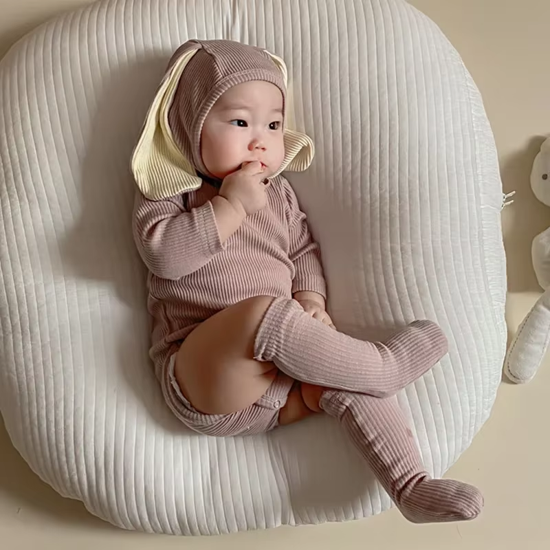 2025 Easter Newborn Baby Rabbit Romper Clothes Casual Bunny Costume 3Pcs Solid Ear Hat Bodysuit Socks 0-24M Baby Girl Outfits