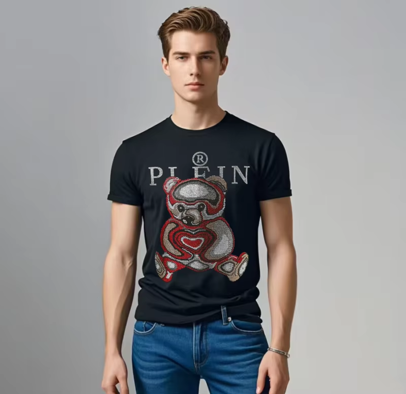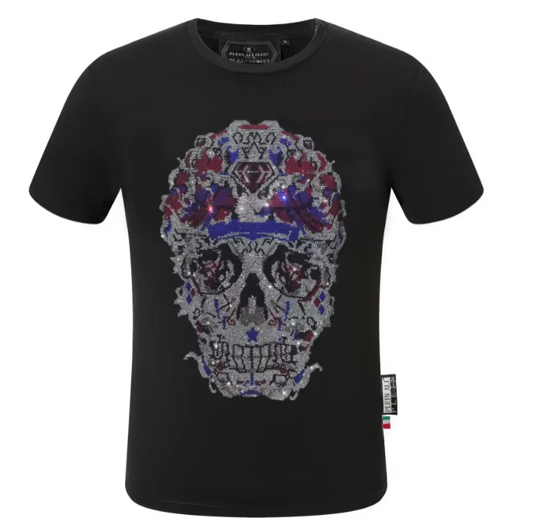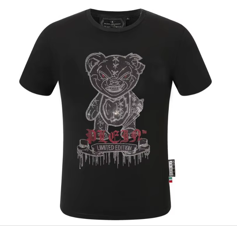 Plein ali brand Top Brand Letter Rhinestones T-shirt Summer Cotton Short Sleeve Tee Men's Fashion Round Neck Top Clothing