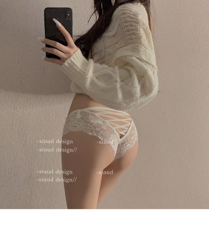 Sexy Cross Hollow Out Panties For Women Embroidered Lace Ladyies Underpants Temptation Peach Buttocks Female T-pants