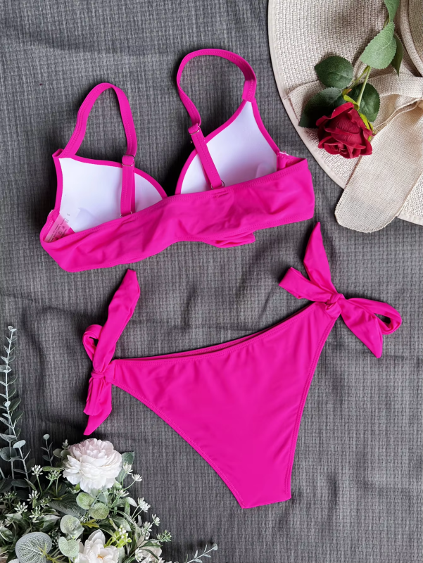 sexy front bow knot push up bikinis two pieces solid swimsuit tie bikini swimsuit Swimwear Biquini conjunto de bikini tankini