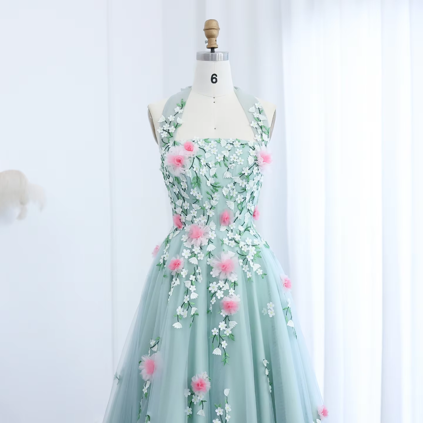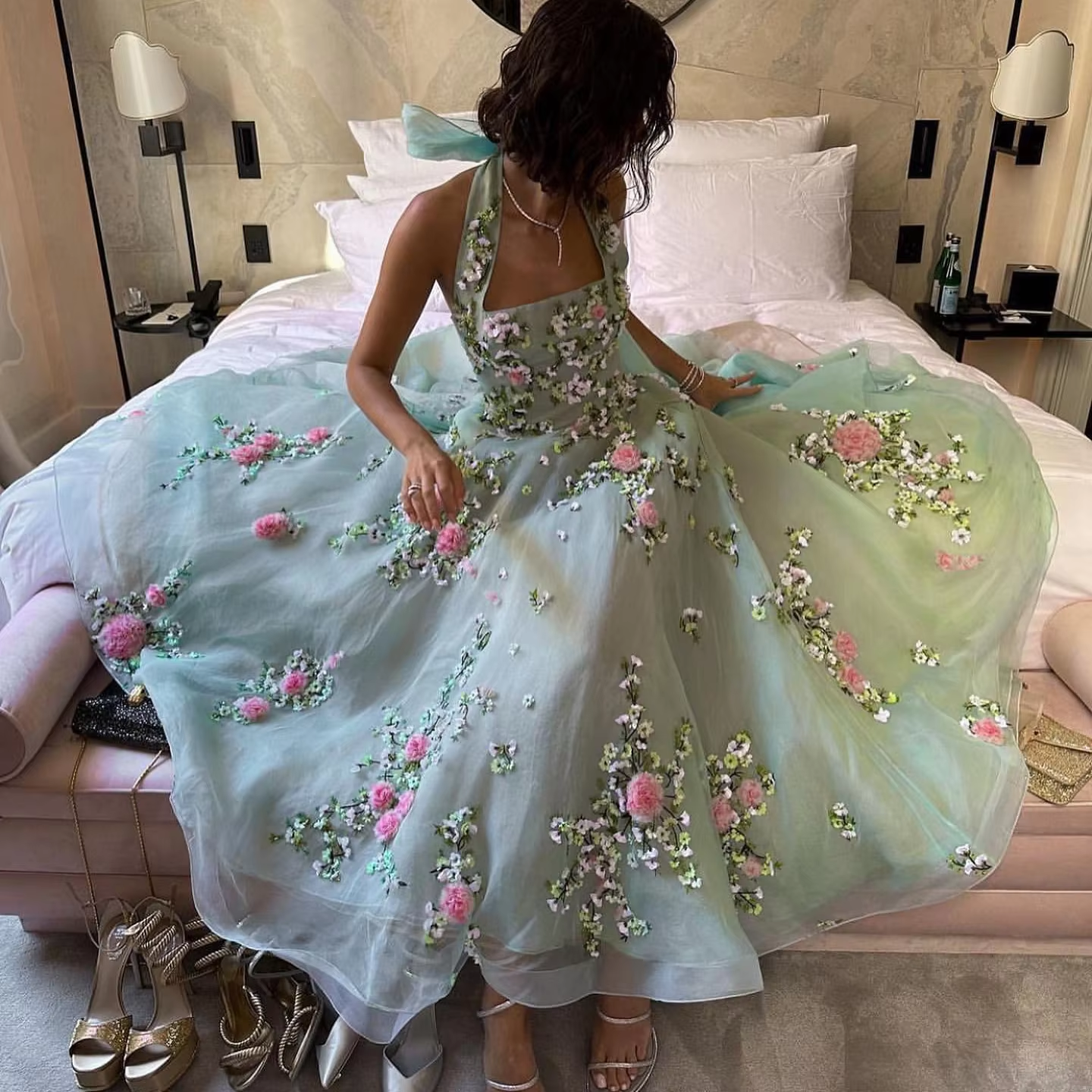 Sharon Said Dubai Luxury Chic 3D Flowers Halter Aqua Evening Dress Women Wedding Party Midi Formal Prom Gowns SS219 Customized