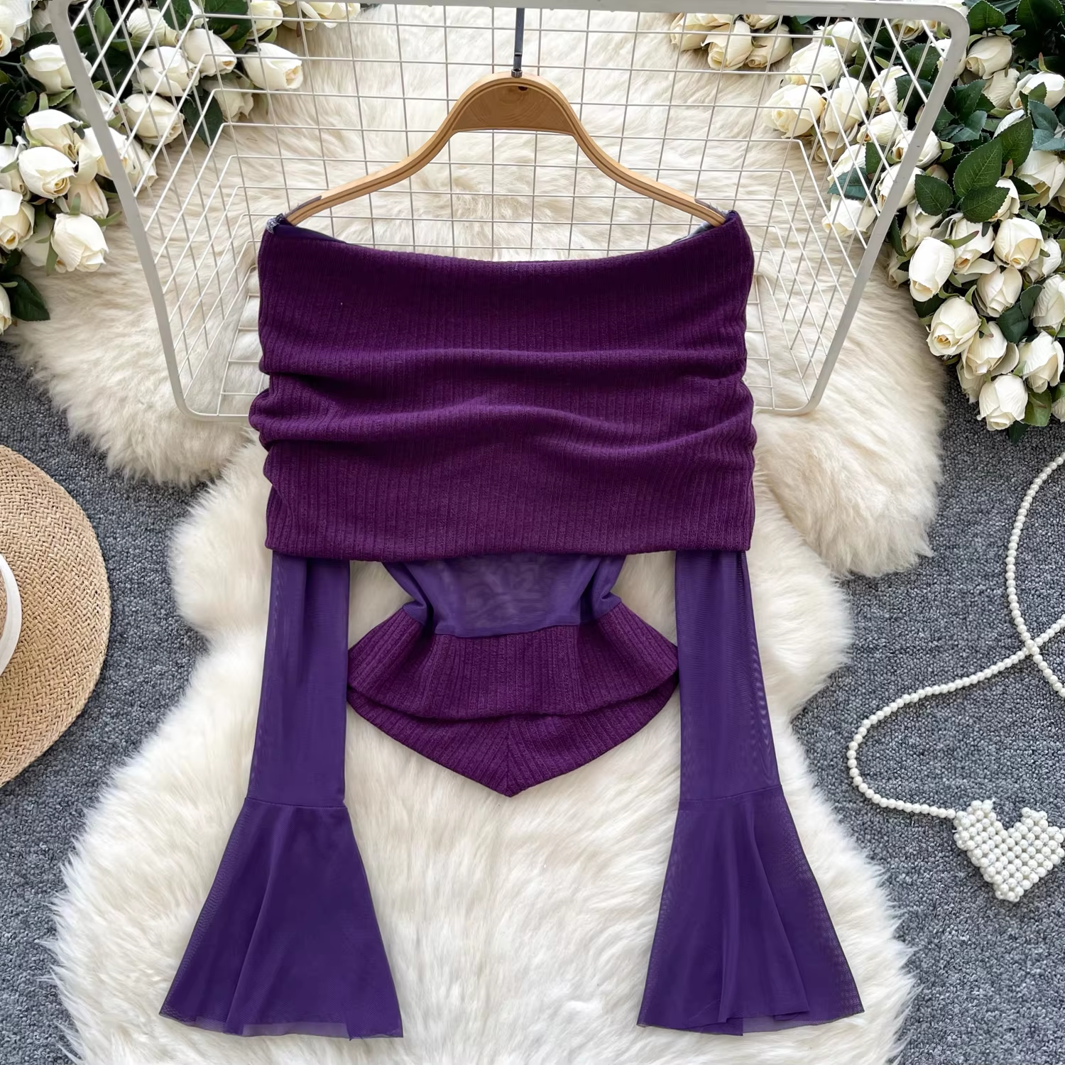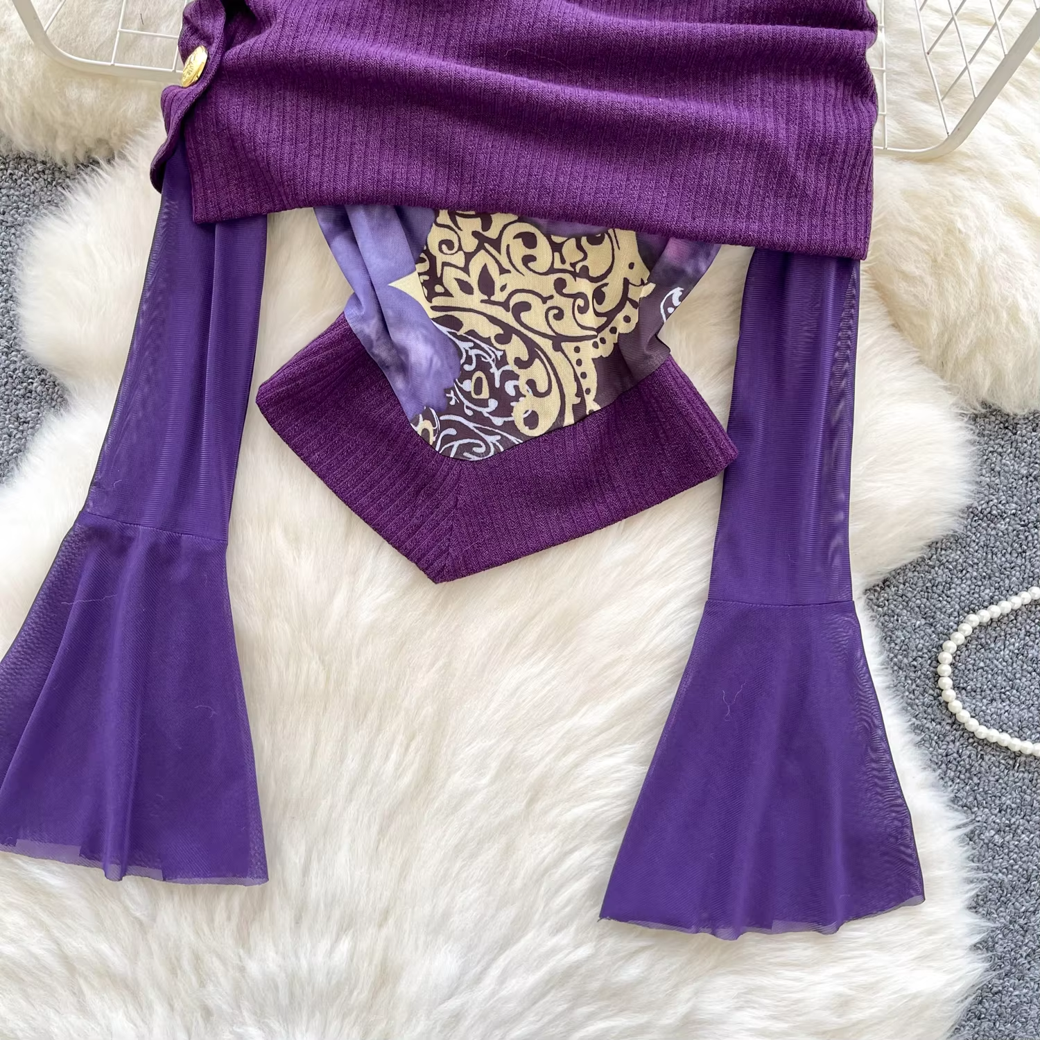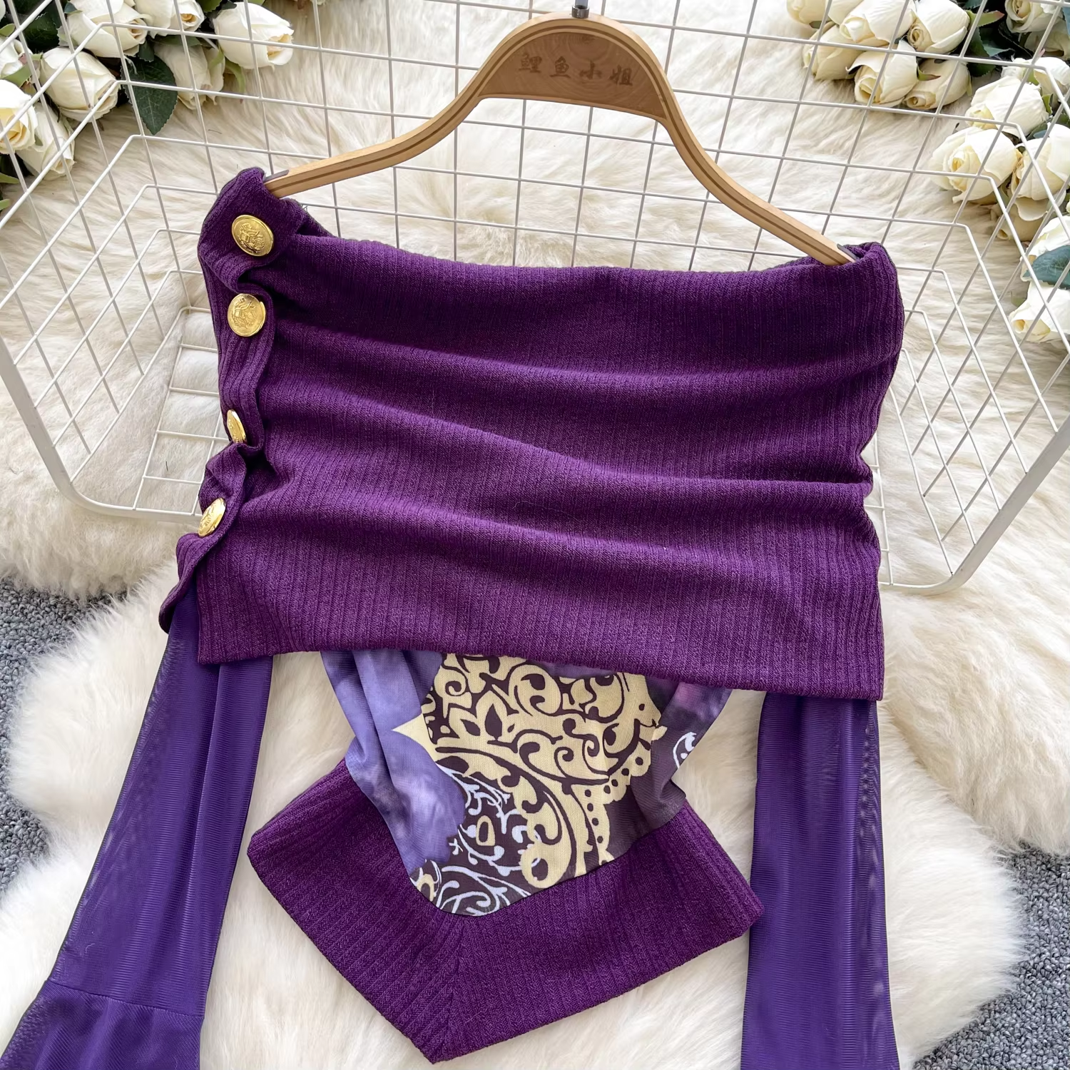 SINGREINY Winter Fashion Print Tops Women Long Sleeve Streetwear Irregular Slim Blouse Off Shoulder Sexy Chic Knitting T-shirt