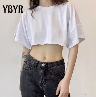 Solid Basic Short Sleeve Womens Tshirt Casual Loose White Fashion Crop Top T Shirt Ladies Fashion Korean short style Tee Shirt